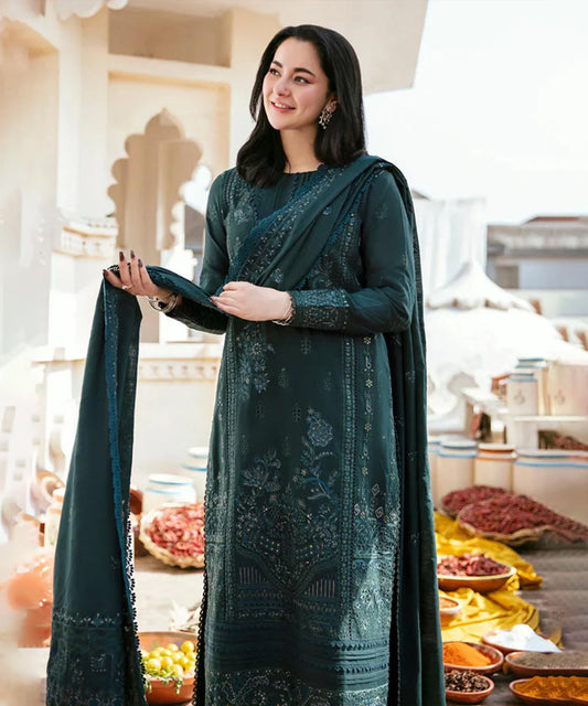 Dhanak-3PC Embroidered Shirt with Digital Printed Wool Shawl -3306
